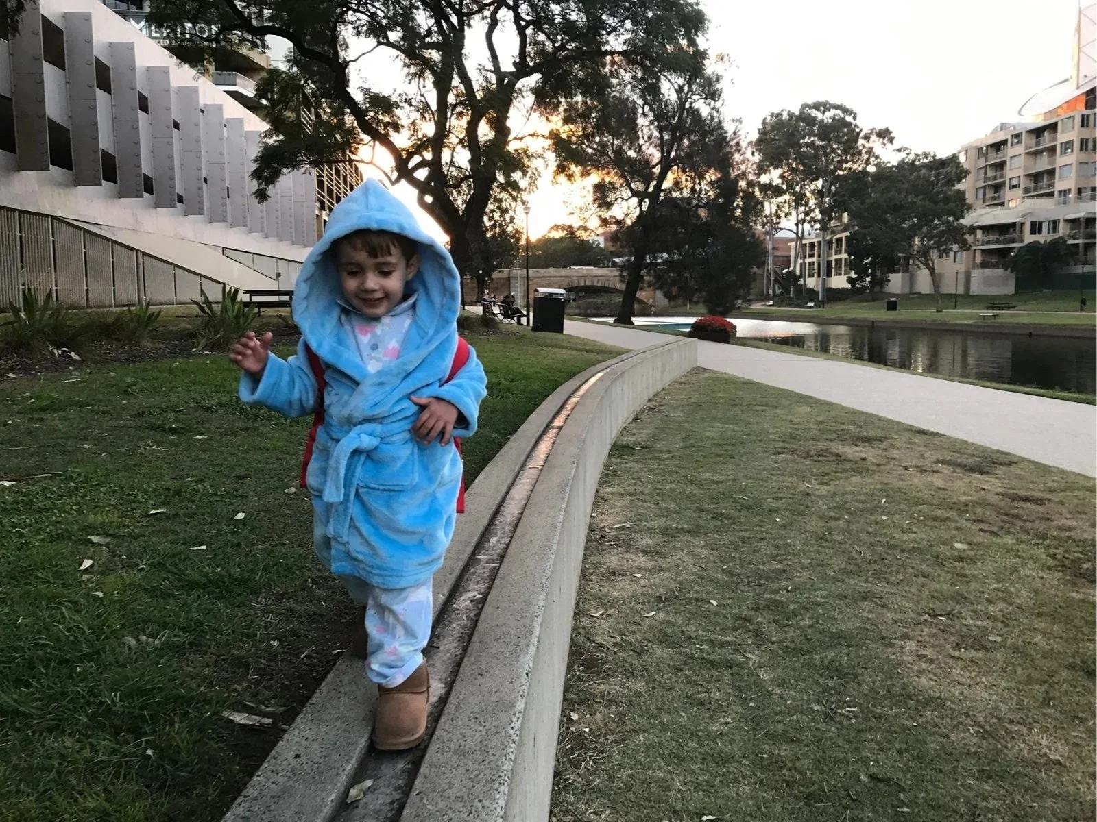 We walked along the Parramatta River to daycare each morning. Same route. Same bridge. Same routine. We sang the same elephant song every single day and jumped off the same concrete fence before heading to the café.